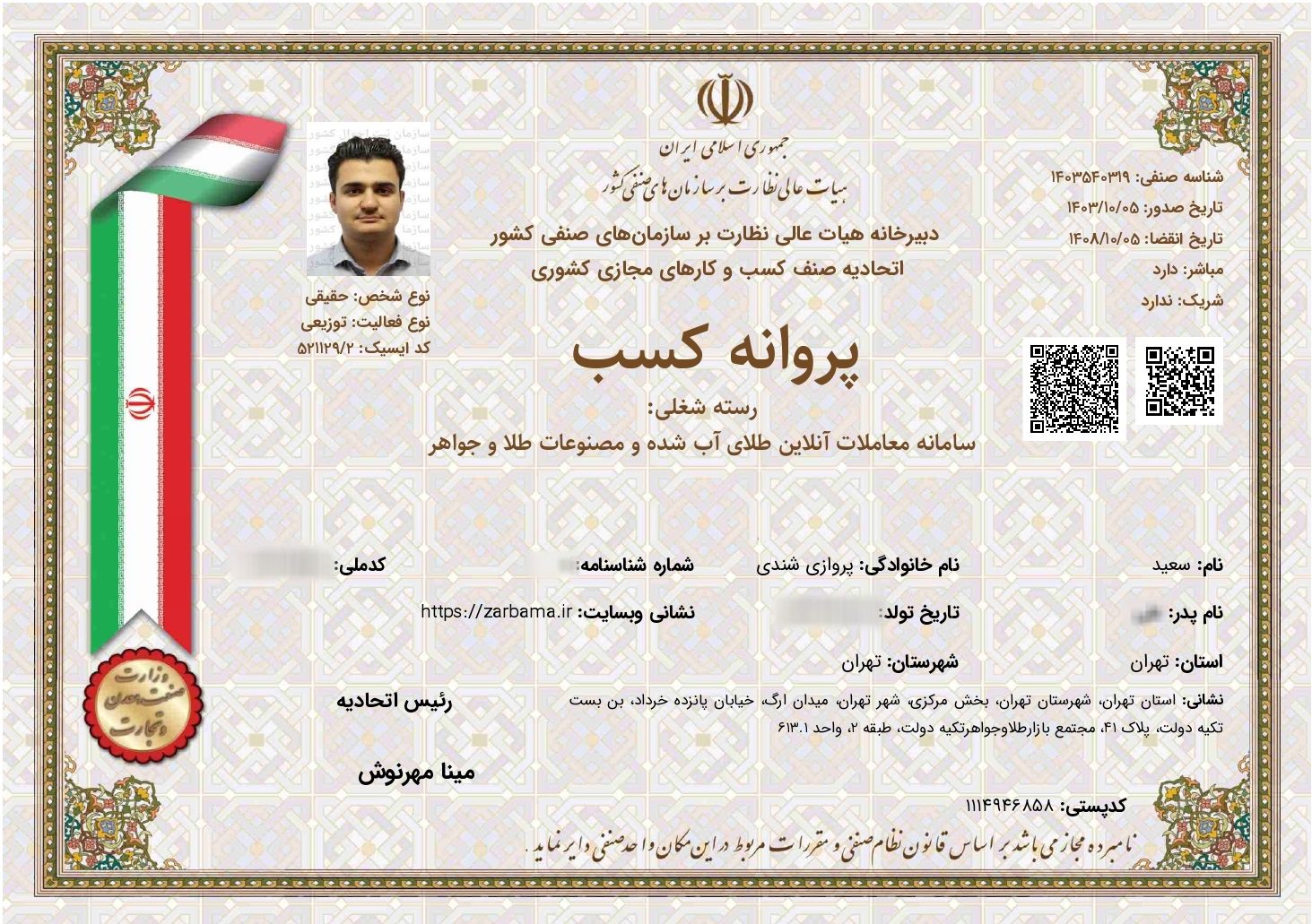 زرباما با دارا بودن نشان اعتماد الکترونیکی (اینماد) و مجوزهای لازم از اتحادیههای صنفی و نهادهای نظارتی، یک پلتفرم معتبر برای معاملات طلا به شمار میرود. این پلتفرم دارای پروانه کسب از اتحادیه صنف کسب و کارهای مجازی و مجوز خرید و فروش طلای آبشده از اتحادیه طلا و جواهر تهران است.